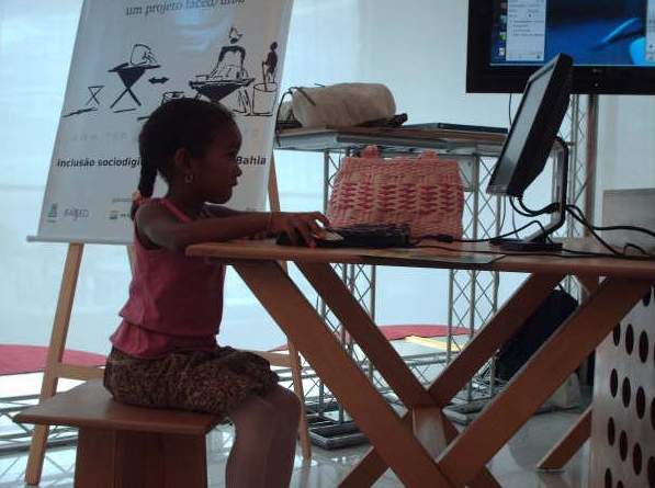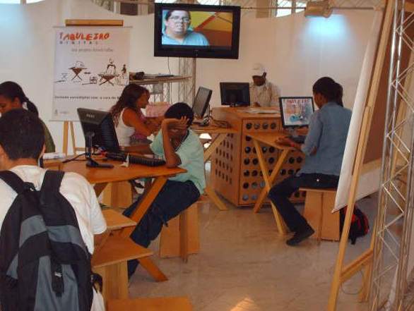 Um dos projetos apresentados durante a 6ª Oficina de Inclusão Digital em Salvador, esta semana, foi o Tabuleiro Digital. Inspirado no tabuleiro da baiana que prepara suas iguarias ao ar livre, esta ação foi criada pela Universidade Federal da Bahia. A idéia é trocar o ambiente de sala de aula e tirar o caráter pedagógico dos projetos de inclusão digital. “Quando formatamos o projeto, não pensamos em ambientes fechados, semelhantes aos de escola. Tampouco queríamos aquele modelo ‘aço escovado’, futurista” afirma a coordenadora do projeto, Maria Helena Bollina. O Tabuleiro Digital é reto, sem encostos, sem almofadas, projetado para uso rápido e ágil.